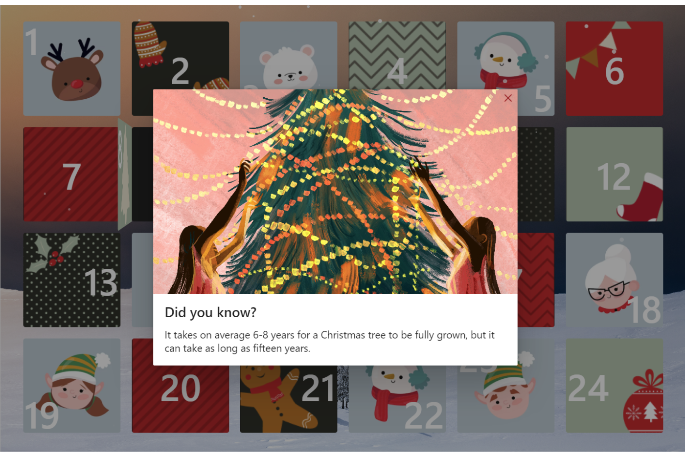 The Advent Calendar app lets editors have all the power! They can switch up layouts, change the background image, and even make it snow for a magical effect!