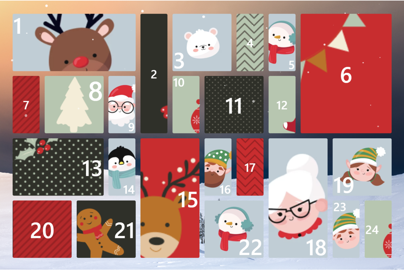 Revamp your advent calendar design by using our masonry layout to create doors of varying sizes.