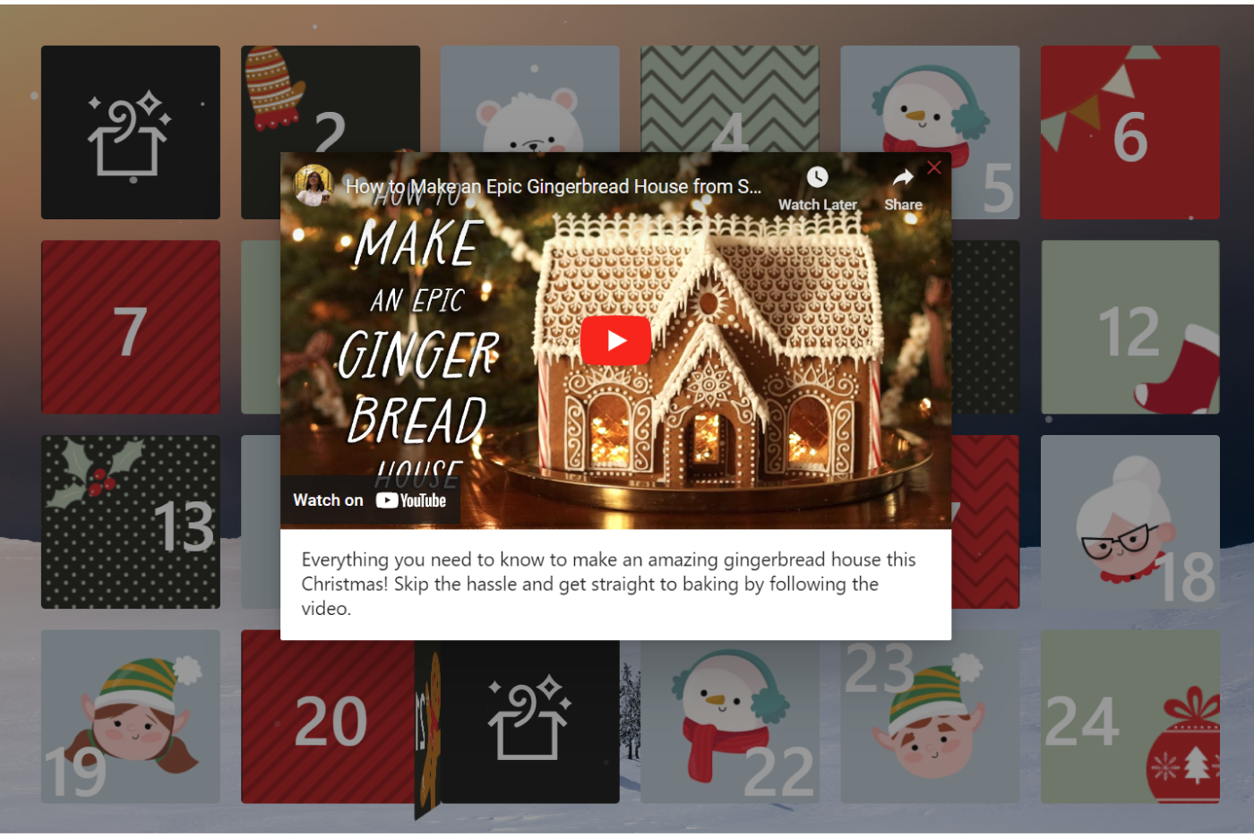 Enhance the interactive nature of the advent calendar by including video content that provides a truly immersive and engaging user experience.